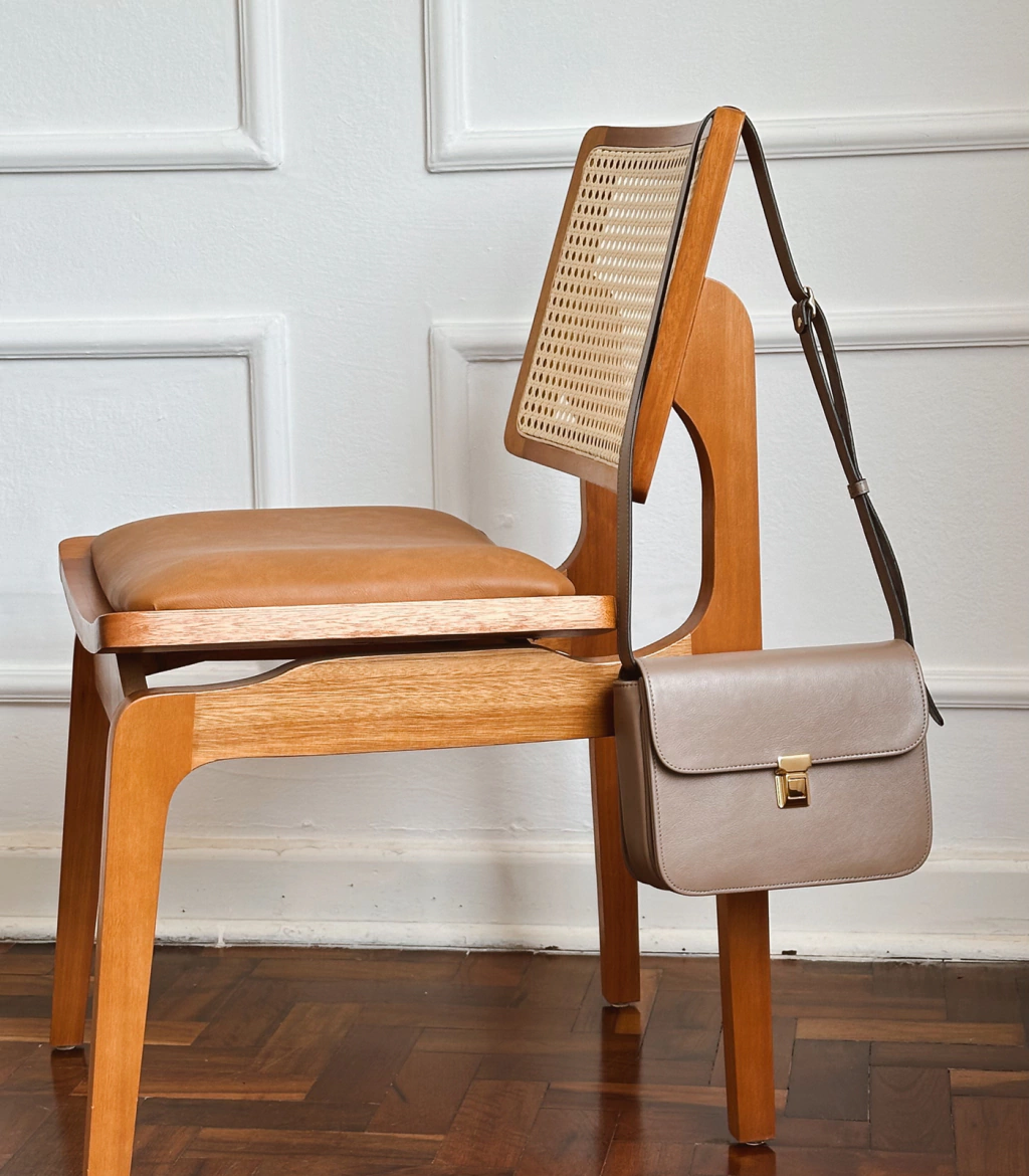 O couro utilizado nessa bolsa tem o acabamento liso e mais fosco, dando a sofisticação que as peças clássicas carregam consigo.