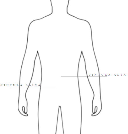 Para saber o tamanho ideal do seu cinto, tire suas medidas conforme a imagem abaixo, e considerando sua maior medida, utilize a tabela para identificar o tamanho mais adequado.